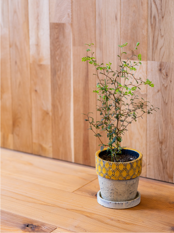 壁や床、断熱材、塗料、接着剤など、家をつくるための素材には目に見えるものから見えないものまでさまざまあり、中には人工的な素材や人体に有害なものも数多く存在します。私たちは表面的な見栄えや価格といった目先のことにとらわれず、時が経つほどに味わいが増し、いつまでも心地よく暮らせる自然素材を使った家づくりをしています。